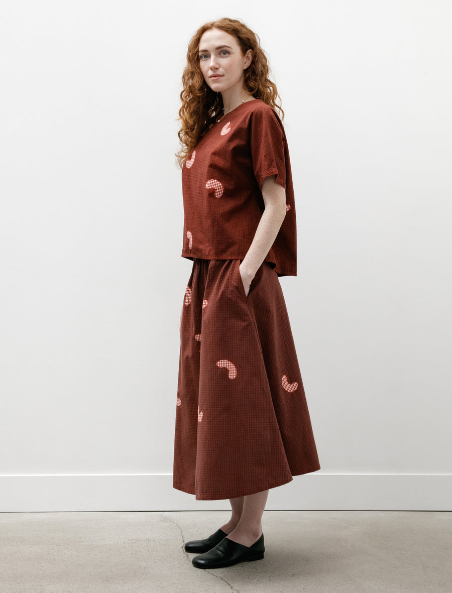 Koboushi Shibori Smile Cotton Gingham Flare Skirt Bordeaux/Red